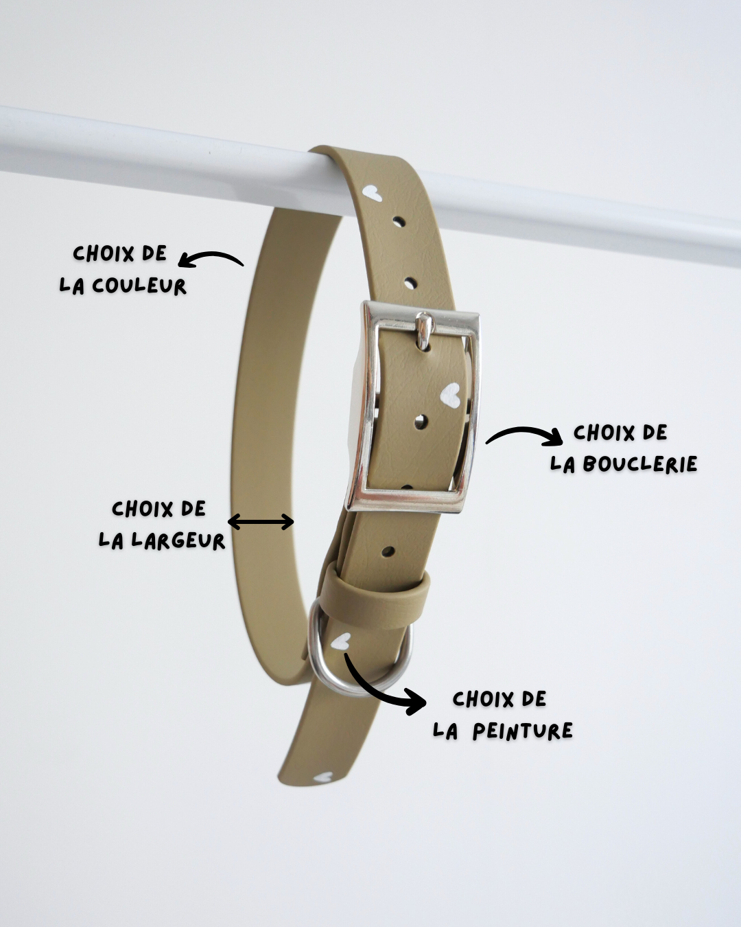Offrez à votre chien un collier délicatement orné de petits cÅ“urs peints à la main. À la fois élégant et confortable, ce collier ajoute une touche de douceur et de charme à chaque promenade.Â